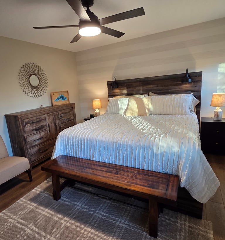 The rental house includes 8 bedrooms and 4 bathrooms, as well as a large outdoor space and a game room with a bar and kitchenette. Sleeps 23 comfortably.